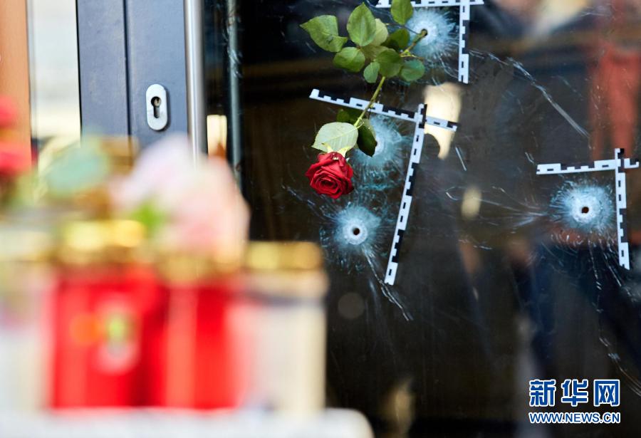 11月5日,奧地利維也納的槍擊事件現(xiàn)場放置著悼念遇難者的鮮花和蠟燭。2日晚發(fā)生的槍擊事件造成多人傷亡。奧總理庫爾茨譴責(zé)這起事件是“卑劣的恐怖襲擊”。新華社發(fā)(喬治斯·施耐德攝)