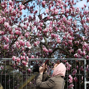 這是3月19日在法國巴黎埃菲爾鐵塔腳下的戰(zhàn)神廣場拍攝的盛放的玉蘭花。新華社記者高靜攝