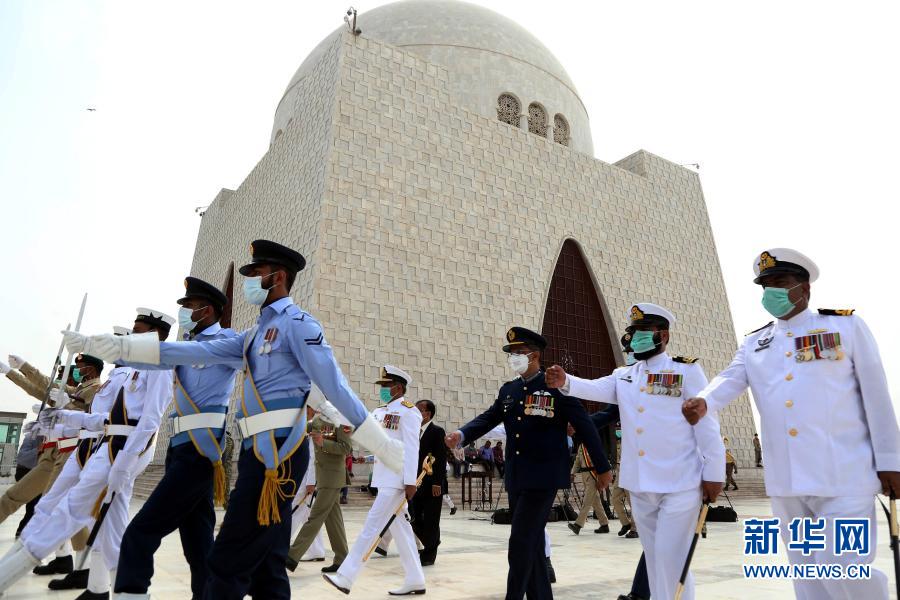 3月23日,巴基斯坦軍人在位于卡拉奇的國父真納墓參加“巴基斯坦日”紀(jì)念活動。