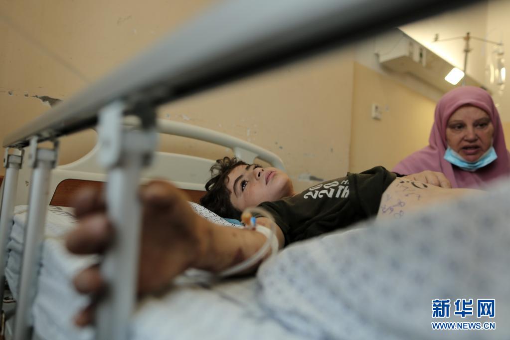 5月20日,一名因空襲受傷的巴勒斯坦兒童在加沙地帶城市汗尤尼斯的醫(yī)院中接受治療。