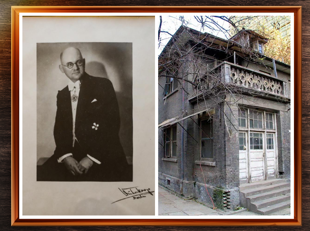 左图是拍摄于1938年的约翰·拉贝照片;右图是2005年12月在南京大学校内拍摄的约翰・拉贝故居。