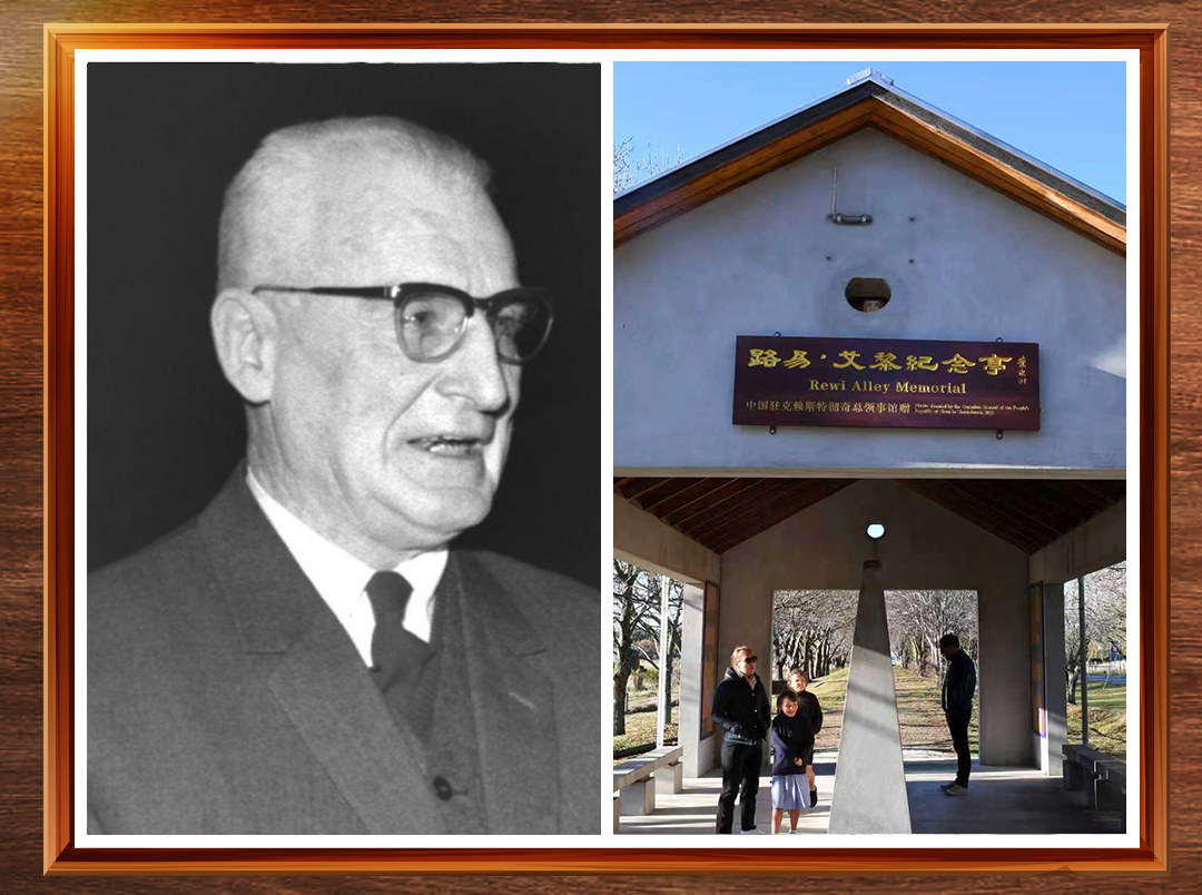 左图是新西兰友人艾黎;右图是位于新西兰斯普林菲尔德的艾黎纪念亭。
