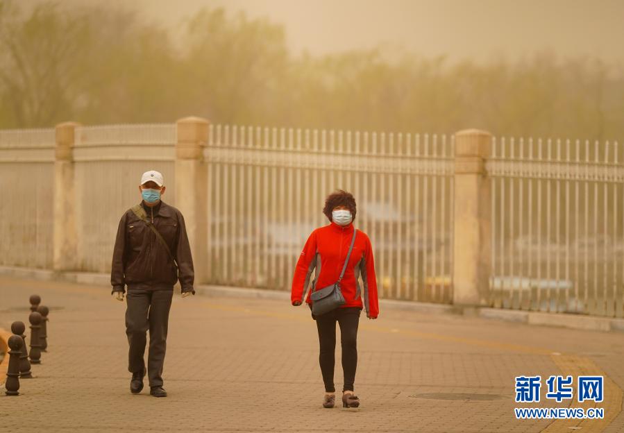 3月15日,行人從北京北海公園附近經(jīng)過。當日,我國北方多地出現(xiàn)沙塵天氣。新華社記者 陳曄華 攝