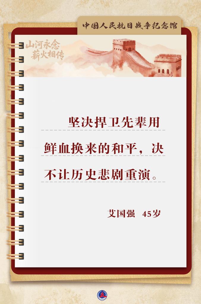 在9月30日烈士纪念日之际,通过根据各地革命纪念馆的观众留言制作的海报,致敬1931年9月18日至1945年9月2日5098天浴血奋战的历史,传承历久弥新的伟大抗战精神。