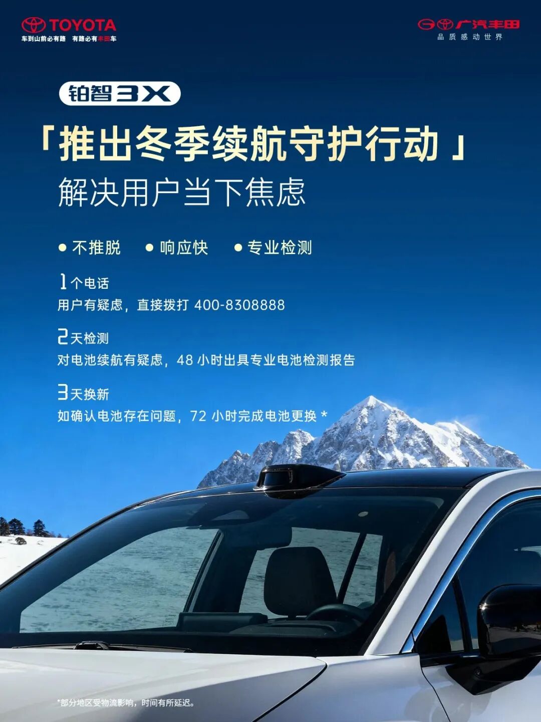 广汽丰田近日表示:铂智3X车型推出"三担责"承诺。厂家直接承担电池自燃责任、厂家直接承担智能泊车辅助事故责任、厂家直接承担电池衰减责任。