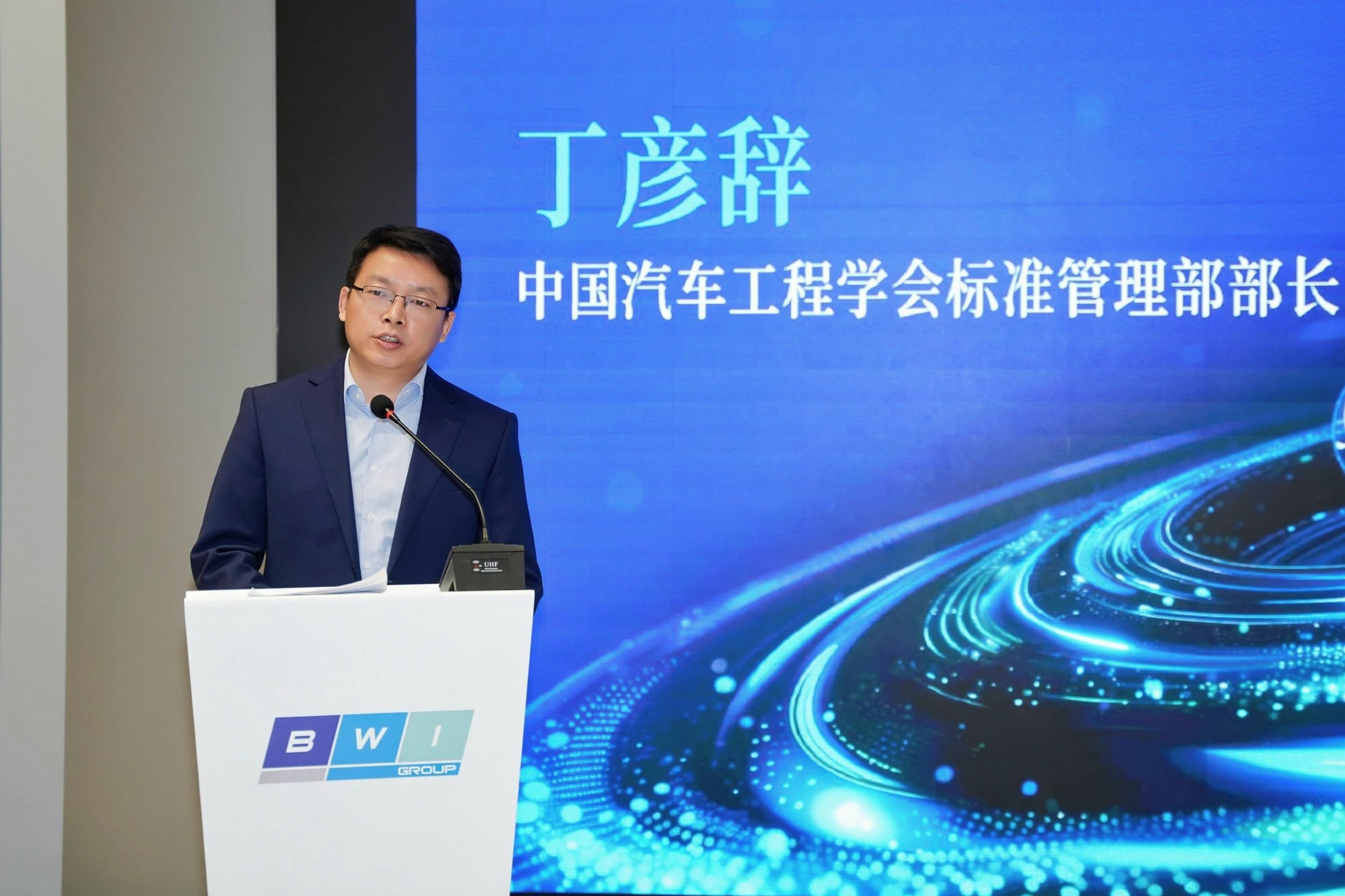 中国汽车工程学会标准管理部部长丁彦辞为标准研讨会致辞