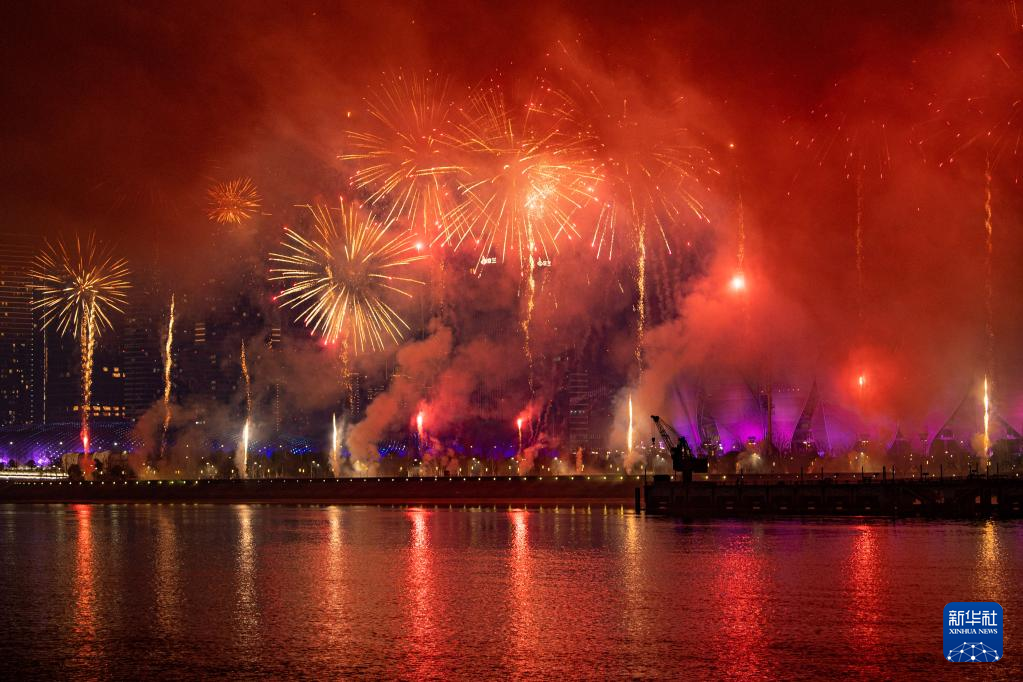 当晚,“迎亚运、庆元宵”烟花灯光秀在浙江杭州举行。