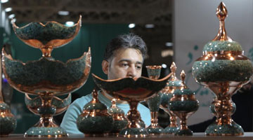 2月13日,在马来西亚雪兰莪州,福建省陶瓷艺术家徐建勇介绍展品。