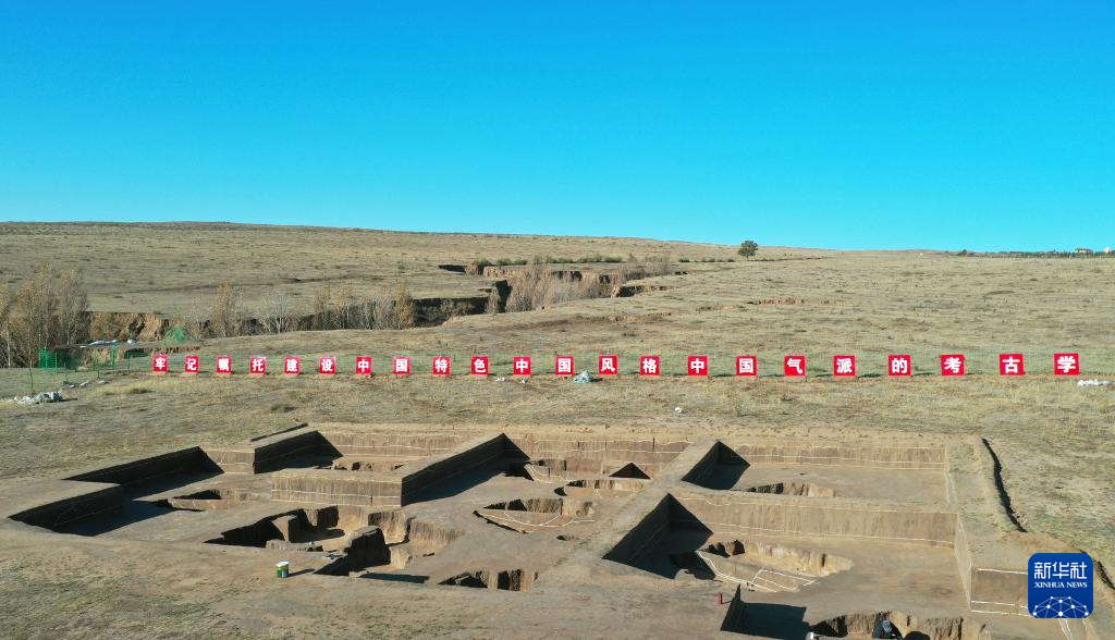 内蒙古巴林左旗辽上京皇城遗址南部一号建筑基址发掘后全景(资料照片)。