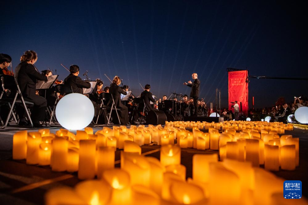 来自昆明聂耳交响乐团及昆明市民族歌舞剧院民乐团的演奏家们在昆明市滇池畔共同演奏包括《义勇军进行曲》《卖报歌》在内的聂耳代表作(7月17日摄)。