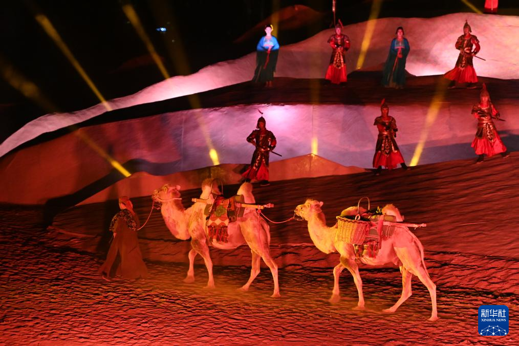 今年以来,脱胎于敦煌文化的洞窟沉浸式体验剧《乐动敦煌》、室内情景体验剧《又见敦煌》、沙漠实景演出《敦煌盛典》和中国残疾人艺术团情景音画剧《千手千眼》四场剧目在丝路名城甘肃敦煌同步上演,剧目将敦煌历史底蕴、服饰文化、乐舞文化等生动融合,为游客呈现出精彩绝伦的敦煌文化视觉盛宴,深受中外游客喜爱。截至8月10日,四大剧目今年已累计演出1175场次,观看游客突破66万人次。其中,《敦煌盛典》以敦煌鸣沙山月牙泉为背景,将沙漠景观与现代舞美结合,将墙体灯光融入实景演出,讲述了一段发生在古丝绸之路重镇敦煌的爱情故事,展示了敦煌的历史文化及人文风貌。