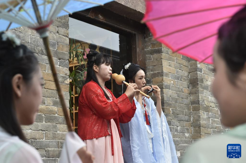 9月25日,身穿古装的工作人员在禹州市神垕老街为游客表演。