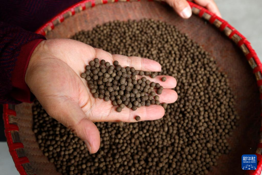 11月9日,在安徽省黄山市歙县深渡镇定潭村新安国医博物馆,李梃查看药用植物生长情况。