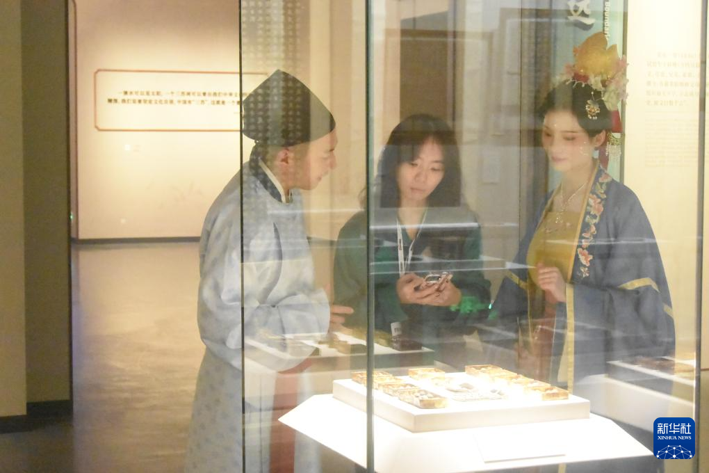 1月31日,身着古装的讲解员在向观众介绍展品。