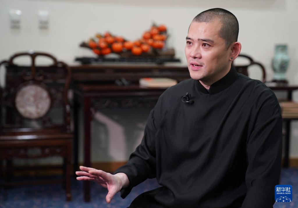 3月12日,在香港文化博物馆,雕塑家任哲接受新华社记者专访。新华社记者 王申 摄