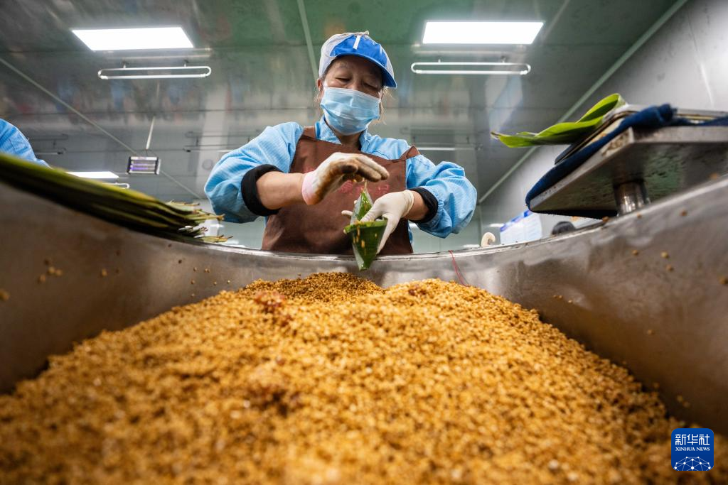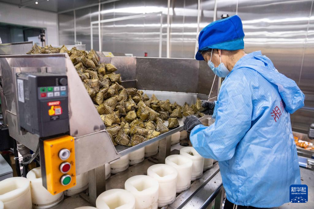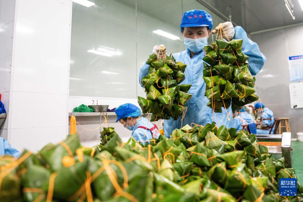 端午临近,湖南省浏阳市关口街道道源湖村多个粽子生产车间抓紧生产粽子。近年来,该村立足本地资源,通过生产规模化、配套体系化,推动粽子产业集群发展。据了解,道源湖村1308户居民中有60%以上从事粽子生产相关工作,2023年该村粽子产业年产值超1.3亿元。