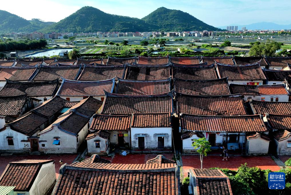 漳州龙海区东园镇埭美村的古厝,横竖对齐、整齐划一(7月10日摄,无人机照片)。