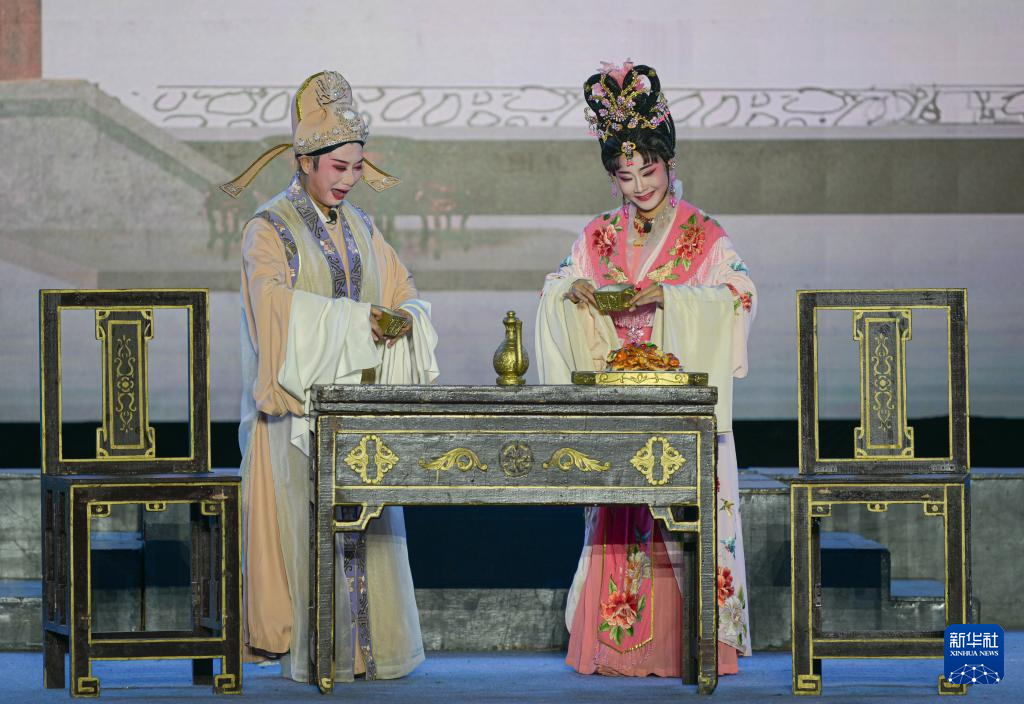 10月6日,“琼韵荟”琼剧精品艺术进社区展演在海南省海口市万绿园举行。来自海南省琼剧院一团的演员们为观众献上了古装琼剧《巡按审妻》。观众在观看琼剧过程中,感受非遗文化的魅力。