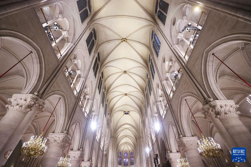 这是12月8日拍摄的巴黎圣母院内景。