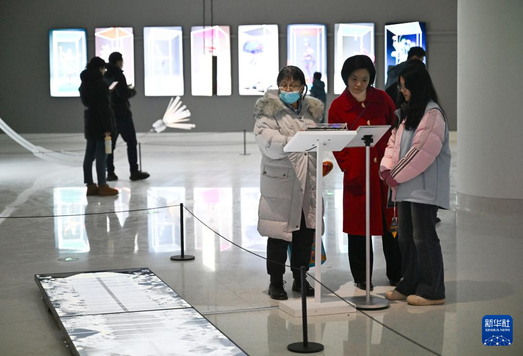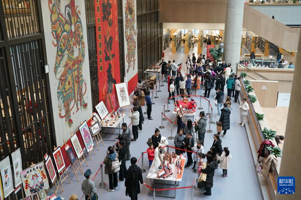 1月1日,观众在位于西安的陕西省图书馆高新馆区内参观一场非遗文化展览。