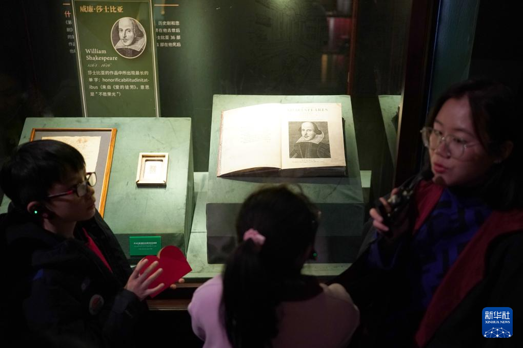 1月1日,在位于西安的陕西省图书馆高新馆区内,观众在文学主题展览中参观拍照。