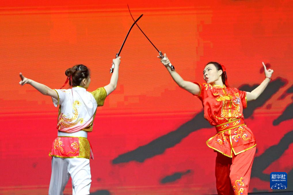 1月20日,在白俄罗斯首都明斯克,来自中国的学生在中白学生春节联欢晚会上表演武术。