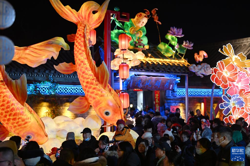 漫步古镇,街头巷尾年画元素随处可见,灯光布景、民俗展演、特色商铺等一系列新场景,吸引了大量游客前来感受传统年味。