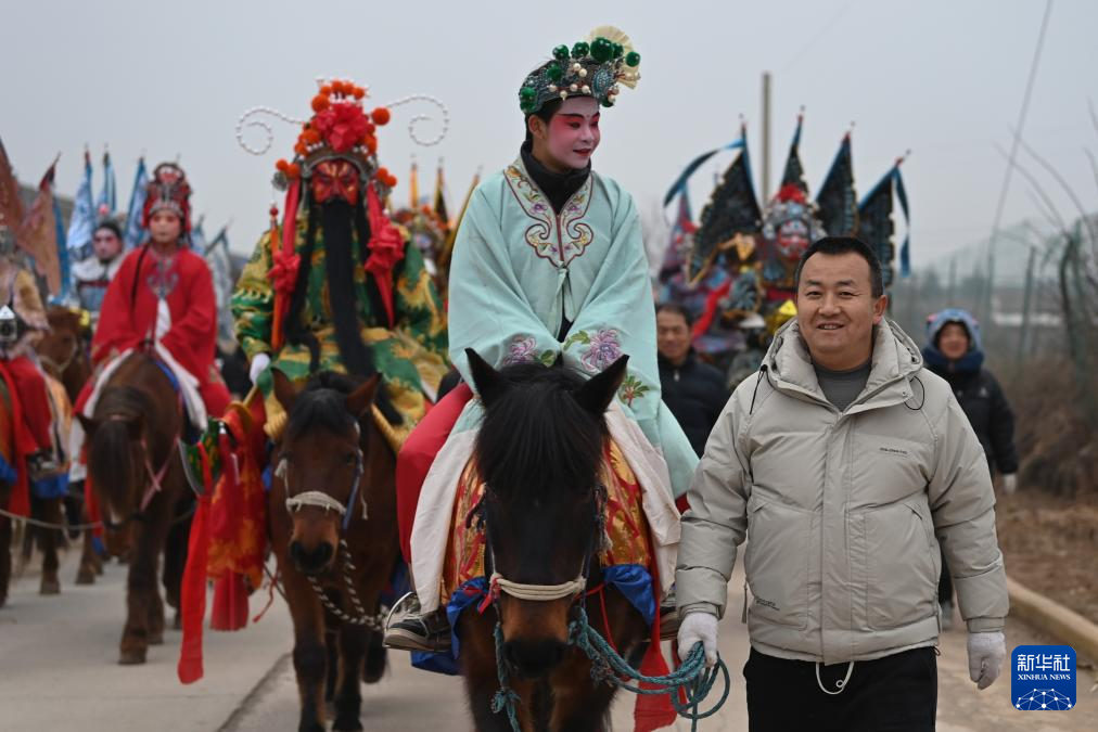 2月11日清早,黄花峪村社火队准备出发。