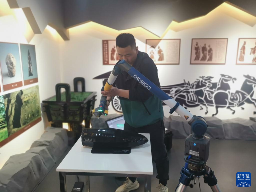 考古人员对石核进行三维扫描(2021年4月21日摄)。新华社发