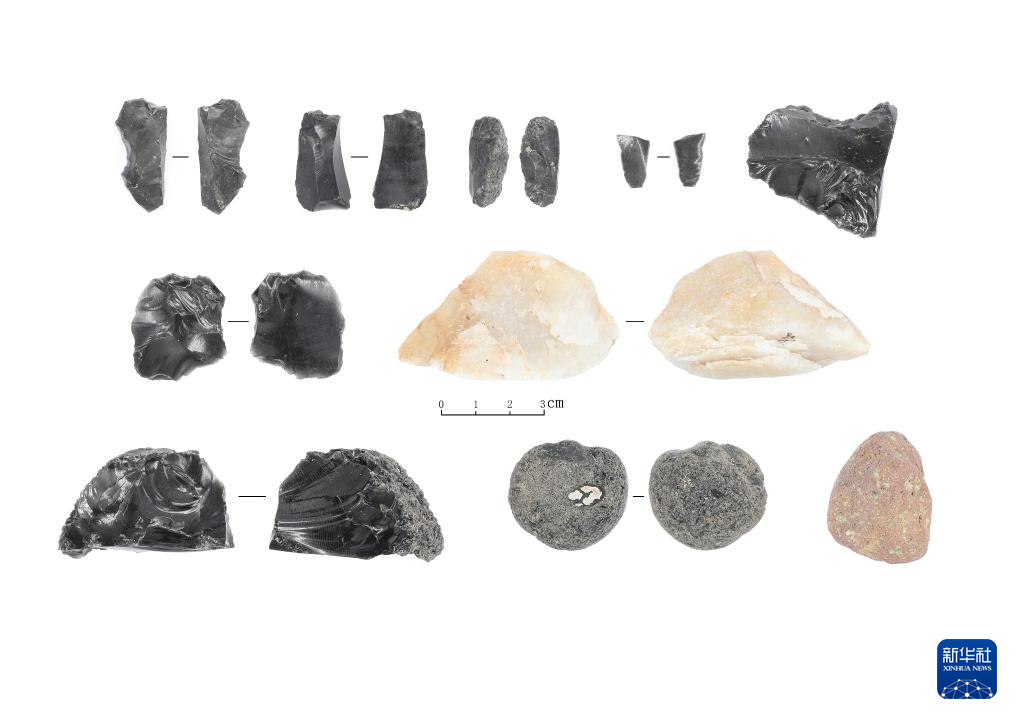 和龙大洞遗址第二期文化层(距今2.8万年-2.4万年)出土石制品(资料照片)。新华社发