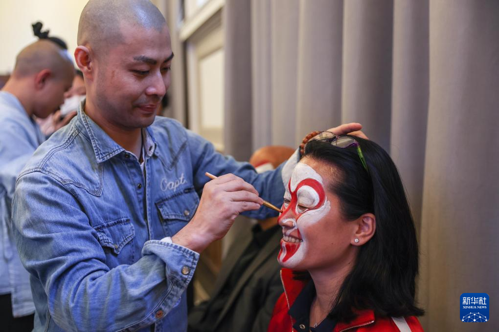 5月9日,在2025“知音湖北·京韵四海”新西兰奥克兰京剧专场演出间隙,观众上台体验京剧艺术。
