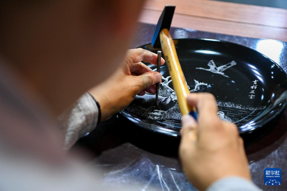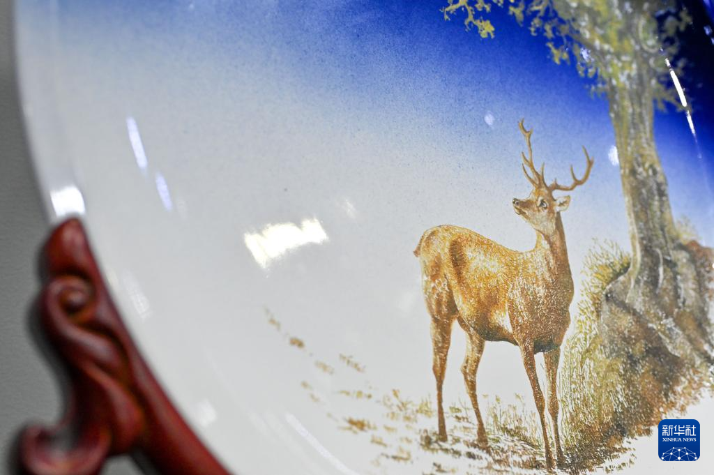 6月6日拍摄的陈银付的瓷刻作品《飞翔》。