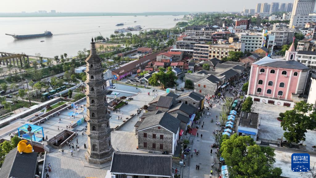 2025年5月26日,游客在洞庭南路历史文化街区休闲游玩(无人机照片)。新华社记者 陈振海 摄