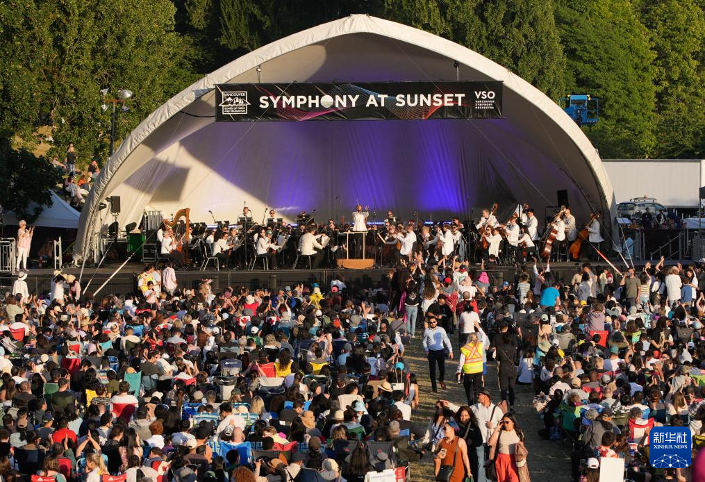 当日,加拿大温哥华举办“日落交响音乐会”,吸引近万名市民和游客齐聚海滨,欣赏这场露天音乐盛宴。