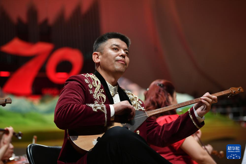 10月7日晚,《弦歌天山》庆祝新疆维吾尔自治区成立70周年音乐会在乌鲁木齐文化中心音乐厅举行。