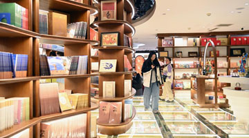 龙禄颖在位于贵州省施秉县的舞水云台非遗工坊和游客交流(10月10日摄)。