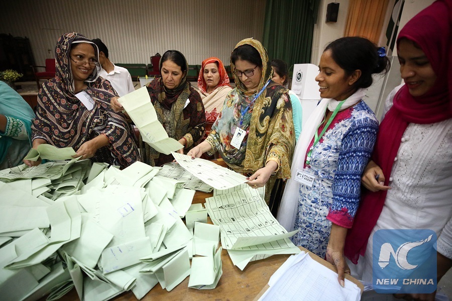 Election officials count votes in Islamabad, capital of Pakistan, on July 25, 2018. (Xinhua/Ahmad Kamal)