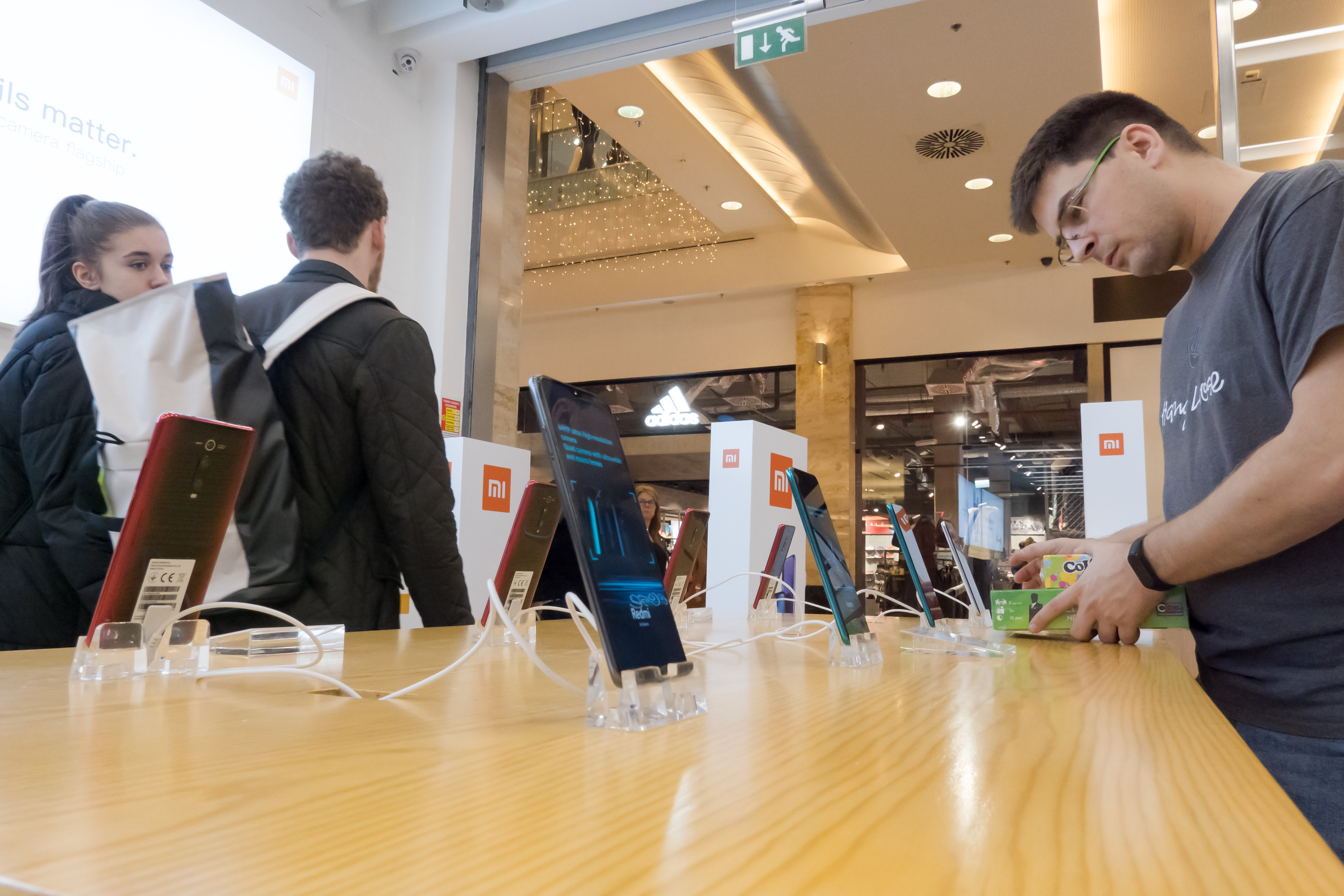 Customers are seen at a store of Chinese technology company Xiaomi at a shopping center in Budapest, Hungary, Dec. 21, 2019. (Photo by Attila Volgyi/Xinhua)