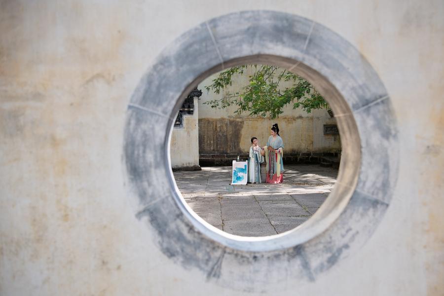 HUANGSHAN, July 30 (Xinhua) -- Nestled at the southern foot of Huangshan Mountain, Chengkan Village in east China's Anhui Province boasts a history of over 1,800 years. The ancient Hui-style architecture blends with distant mountains and misty clouds here, creating a picturesque landscape.