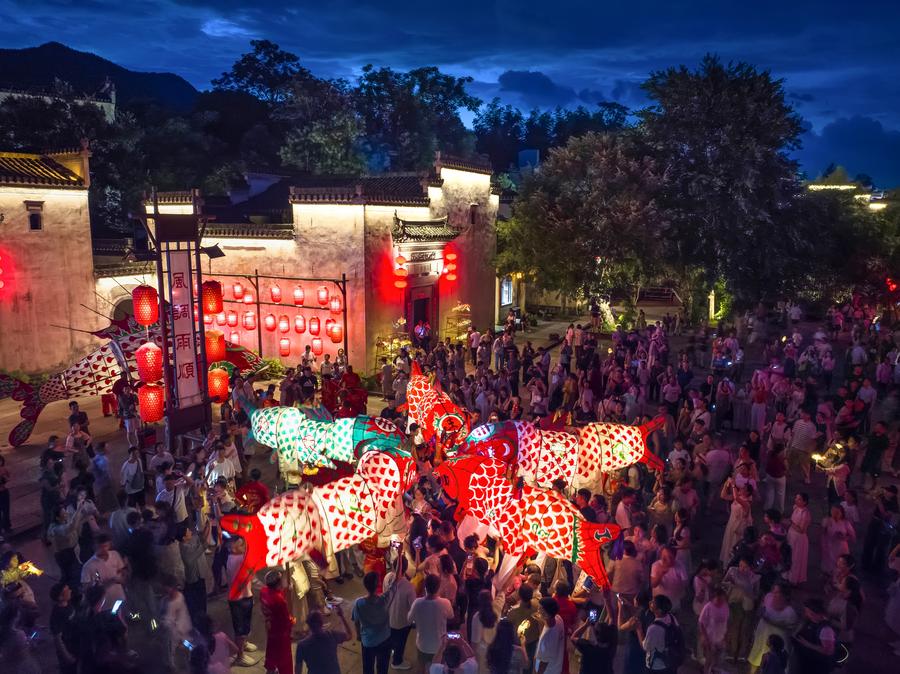 Tourists pose for photos in Chengkan Village, Huizhou District of Huangshan City, east China's Anhui Province, July 25, 2025. (Xinhua/Zhang Duan)Tourists watch a fish lantern parade in Chengkan Village, Huizhou District of Huangshan City, east China's Anhui Province, July 25, 2025. (Xinhua/Zhang Duan)A drone photo taken on July 25, 2025 shows tourists watching a fish lantern parade in Chengkan Village, Huizhou District of Huangshan City, east China's Anhui Province. (Photo by Fan Chengzhu/Xinhua)A fish lantern team parades in Chengkan Village, Huizhou District of Huangshan City, east China's Anhui Province, June 30, 2025. (Photo by Shi Yalei/Xinhua)Tourists visit Chengkan Village, Huizhou District of Huangshan City, east China's Anhui Province, July 25, 2025. (Xinhua/Zhang Duan)This photo taken on July 25, 2025 shows a view at dusk in Chengkan Village, Huizhou District of Huangshan City, east China's Anhui Province. (Photo by Fan Chengzhu/Xinhua)