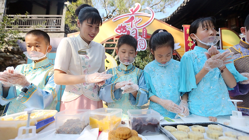 Traditional culture has emerged as a highlight of the holiday season. In Shanghai, subway displays of paper-cuttings depicting the Moon goddess Chang'e, bunny-shaped lanterns in an ancient town, and fabric collages at the Power Station of Art drew crowds eager to capture the perfect holiday shot.