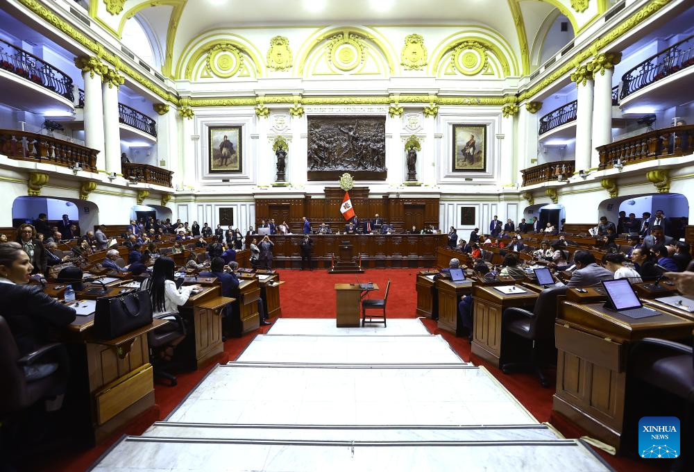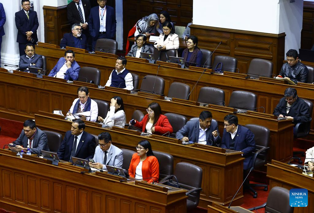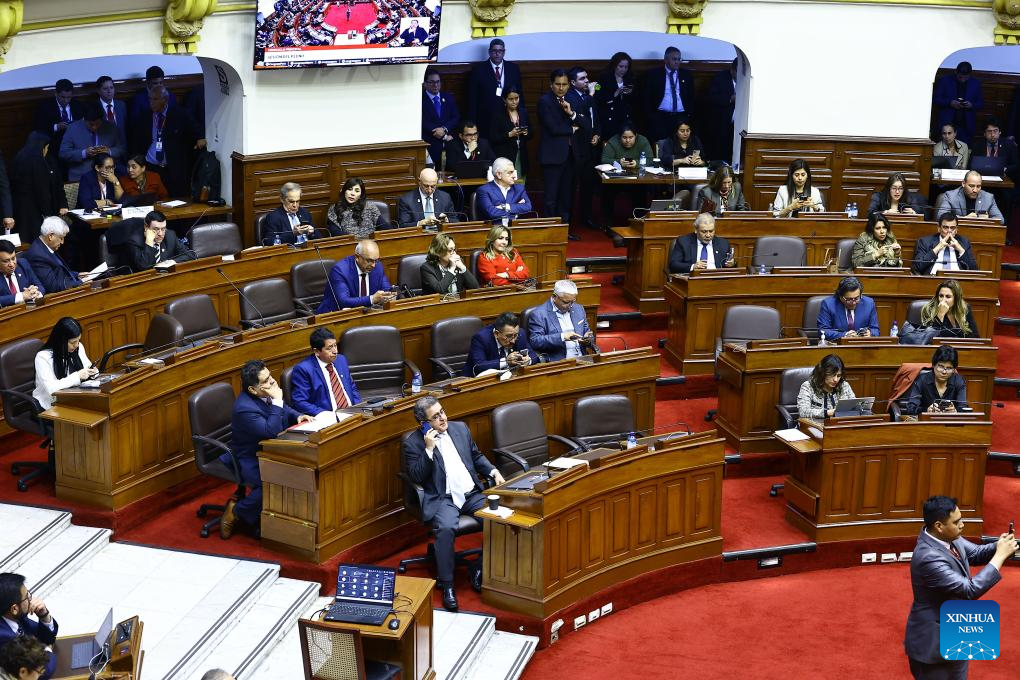 Peru's lawmakers demanded then President Dina Boluarte appear at the Congress session to defend herself before voting to approve her impeachment on Thursday night. But Boluarte did not attend the meeting. The Congress passed the impeachment against her shortly afterwards. (Peru's Congress/Handout via Xinhua)