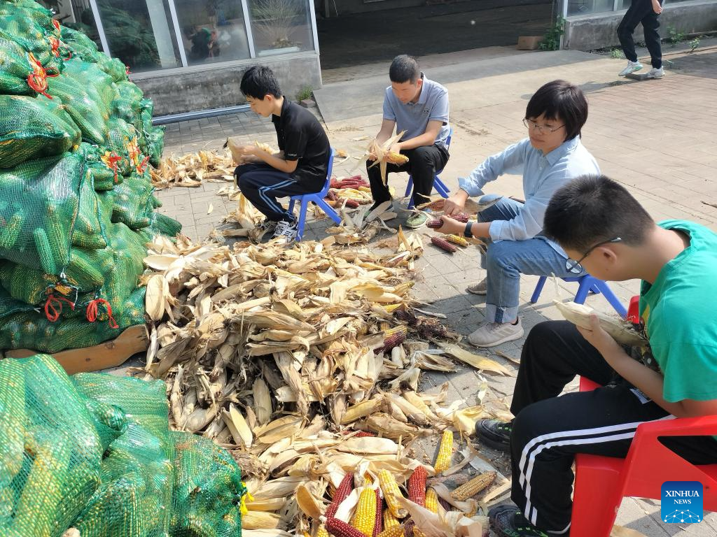 TIANJIN, Oct. 11 (Xinhua) -- On a sunny autumn day, teenagers and their parents were busy harvesting corn and sweet potatoes on a piece of farmland in north China's Tianjin Municipality.