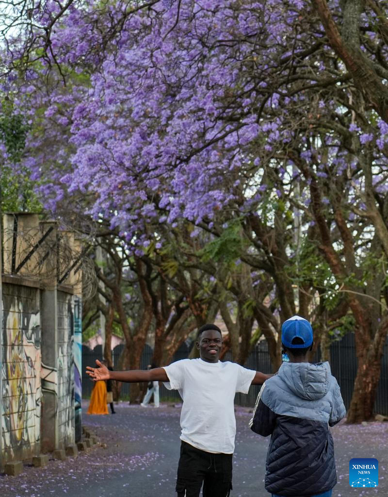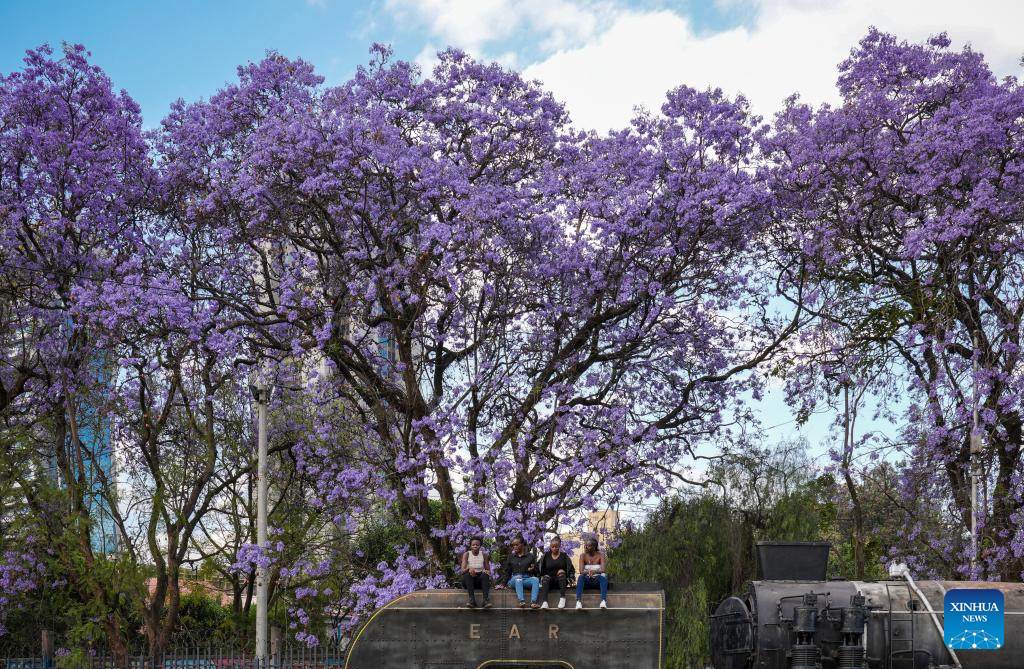 Jacaranda trees in Nairobi are in the blooming season from September to November every year. (Xinhua/Li Yahui)