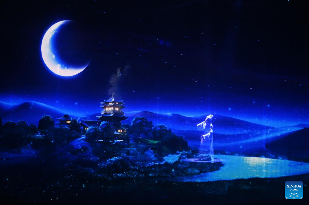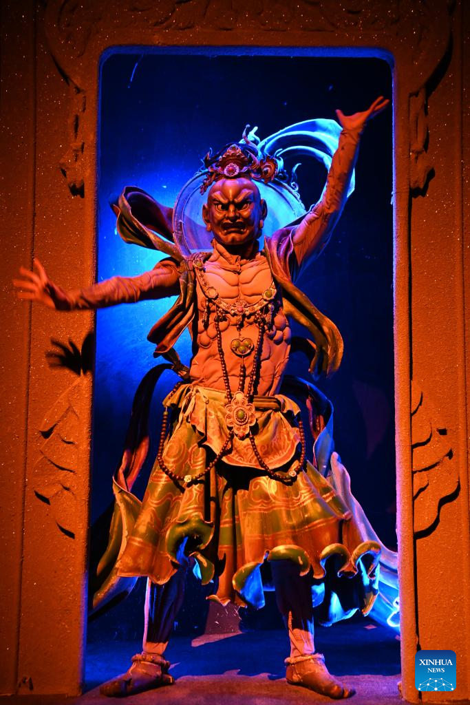 An immersive drama titled "Ancient Sound of Dunhuang" is staged for guests attending the Global Mayors Dialogue -- Dunhuang event, in Dunhuang, northwest China's Gansu Province, Oct. 12, 2025. (Xinhua/Fan Peishen)
