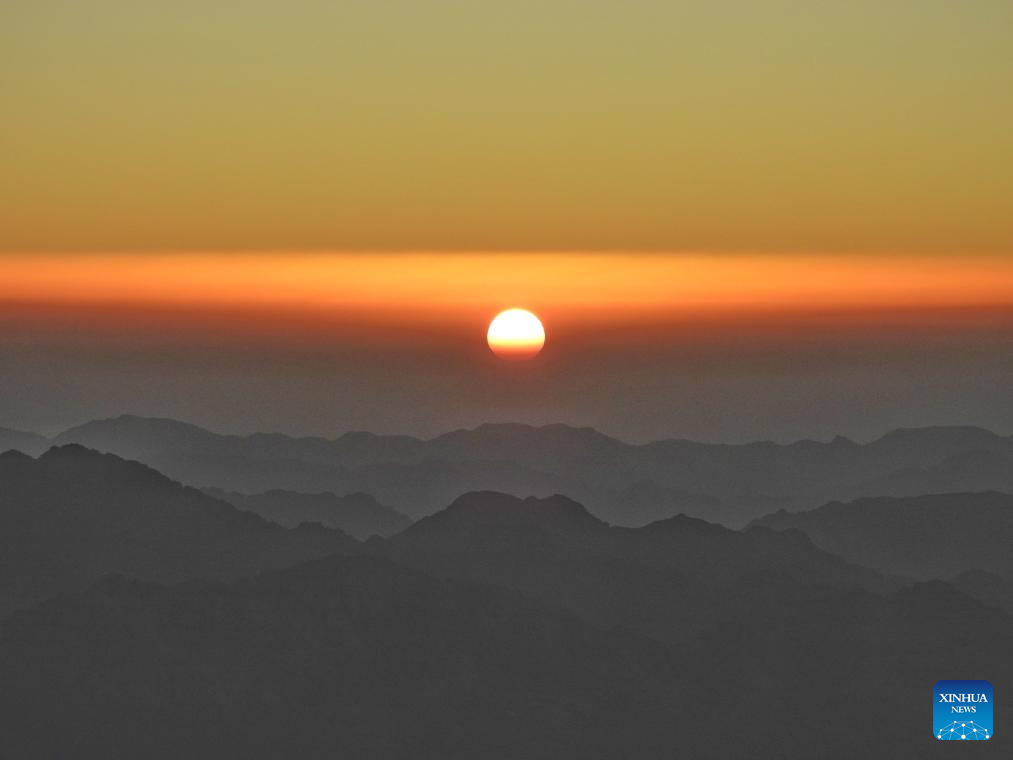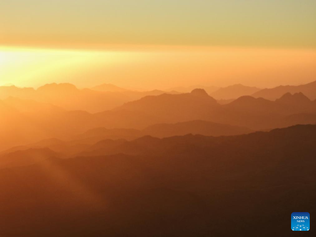 This photo taken from Mount Sinai on Oct. 11, 2025 shows the scenery at sunrise in the Sinai Peninsula, Egypt. (Photo by Liu Minhao/Xinhua)