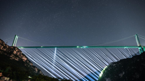 Night view of Huajiang Grand Canyon Bridge in China's Guizhou