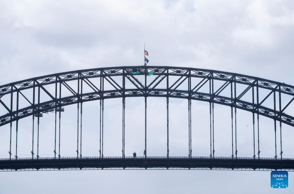 Flags fly at half-mast on the Harbor Bridge in Sydney, Australia, Dec. 15, 2025.
