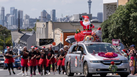 People attend parade to celebrate coming Christmas in Auckland, New Zealand