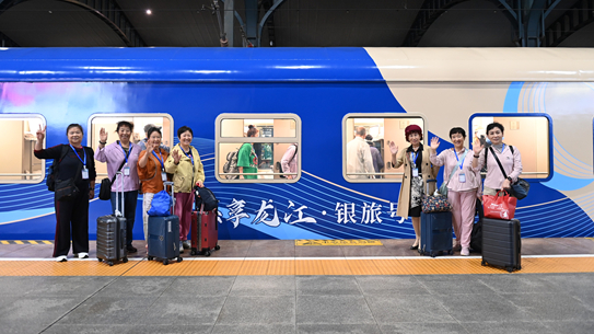 Tourist train with elderly-friendly modifications departs from Harbin for grassland trip